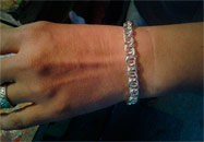 Full-fledged silver bracelet on hand.