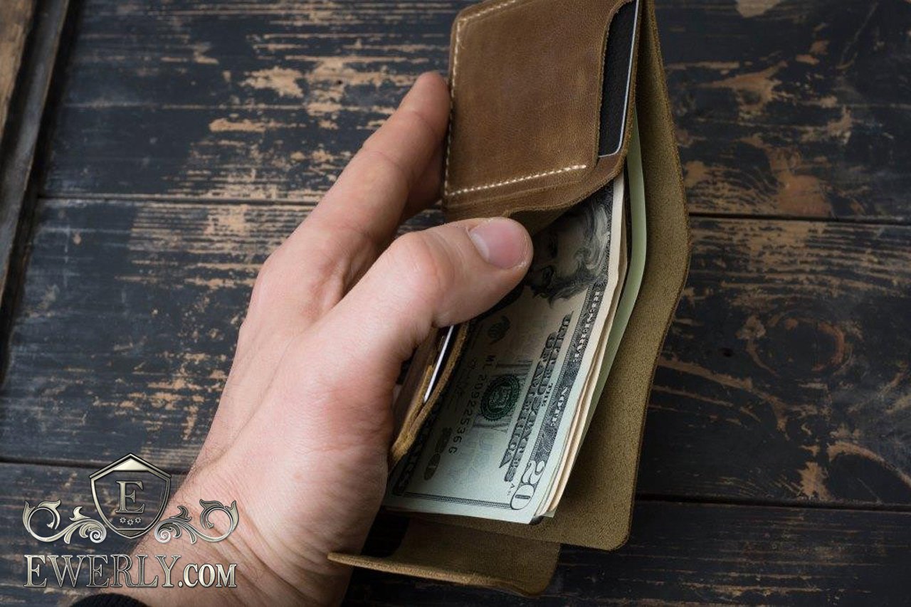 Данное портмоне застёгивается с помощью кобурных кнопок, может показаться, что достаточно ненадёжно, но это не так. Также обращаем Ваше внимание, что отделение для денег не закрыто с одной стороны. За счёт такой конструкции имеет большую вместительность в сравнении с конкурентами - кошельками в этой же нише. Отлично пойдёт в качестве подарка, как весьма уникальная и практичная вещь.