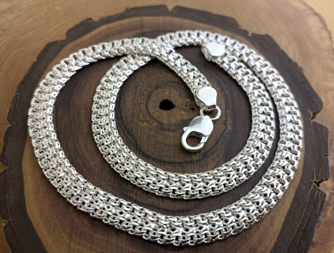 Плетение Двойной бисмарк - серебряная цепь на шею